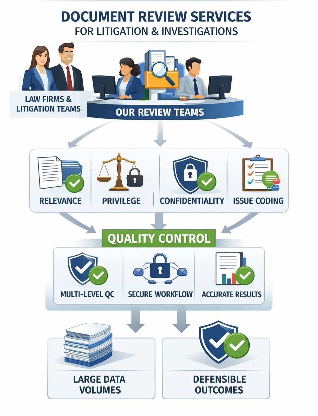 PatentManiac provides structured and scalable document review services for litigation and investigations. Our teams analyze documents for relevance, responsiveness, privilege, confidentiality, and issue-based coding. Multi-level quality checks and secure workflows ensure accurate, defensible outcomes even for large volumes of data. Services are offered exclusively to law firms and litigation teams.